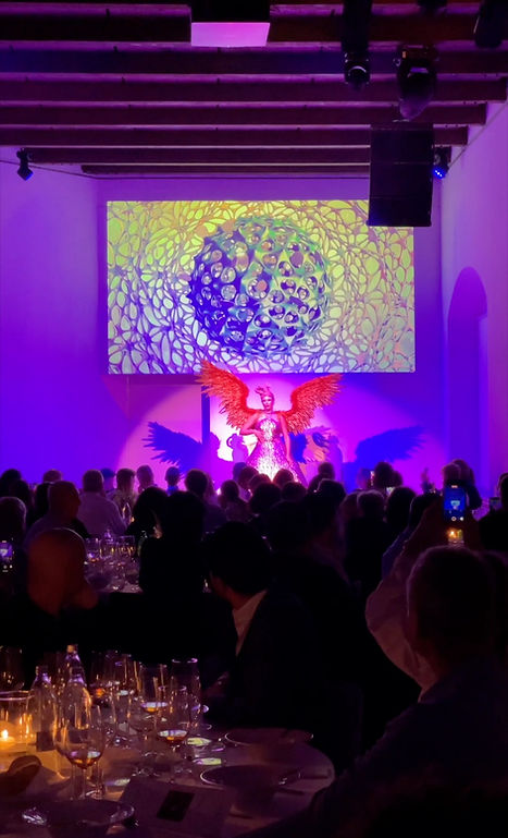 Sculptural costumes catch the light. Music rises. Choreography unfolds close enough to feel personal, refined enough to feel exclusive. Visuals are cinematic, the atmosphere immersive, and the experience lingers long after the last toast.